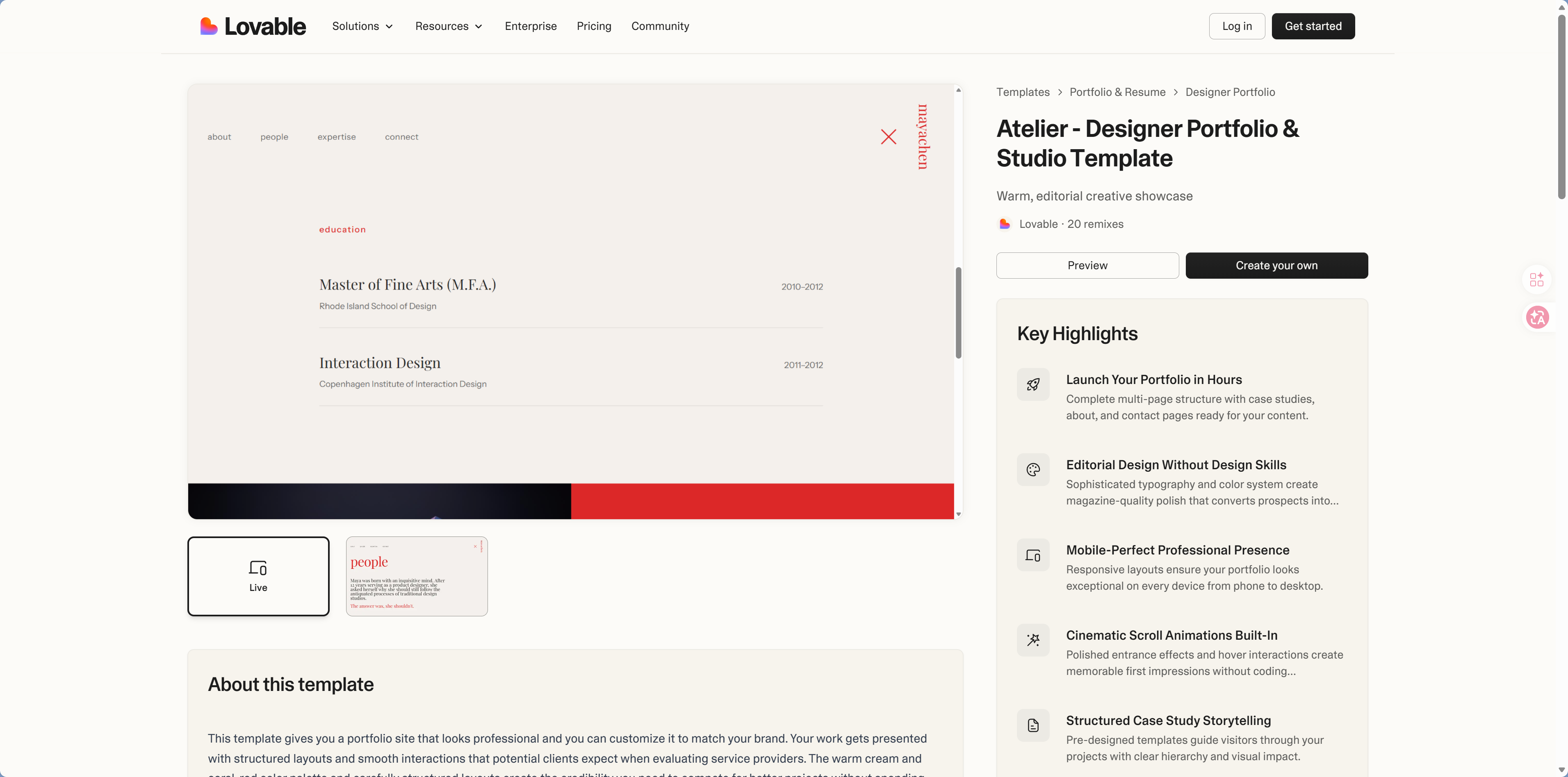 Lovable 不只是做 UI,它能生成包含前后端的完整应用。适合快速验证产品想法。和 Google AI Studio 类似,但 Lovable 更侧重于生成可部署的成品,而不只是原型。