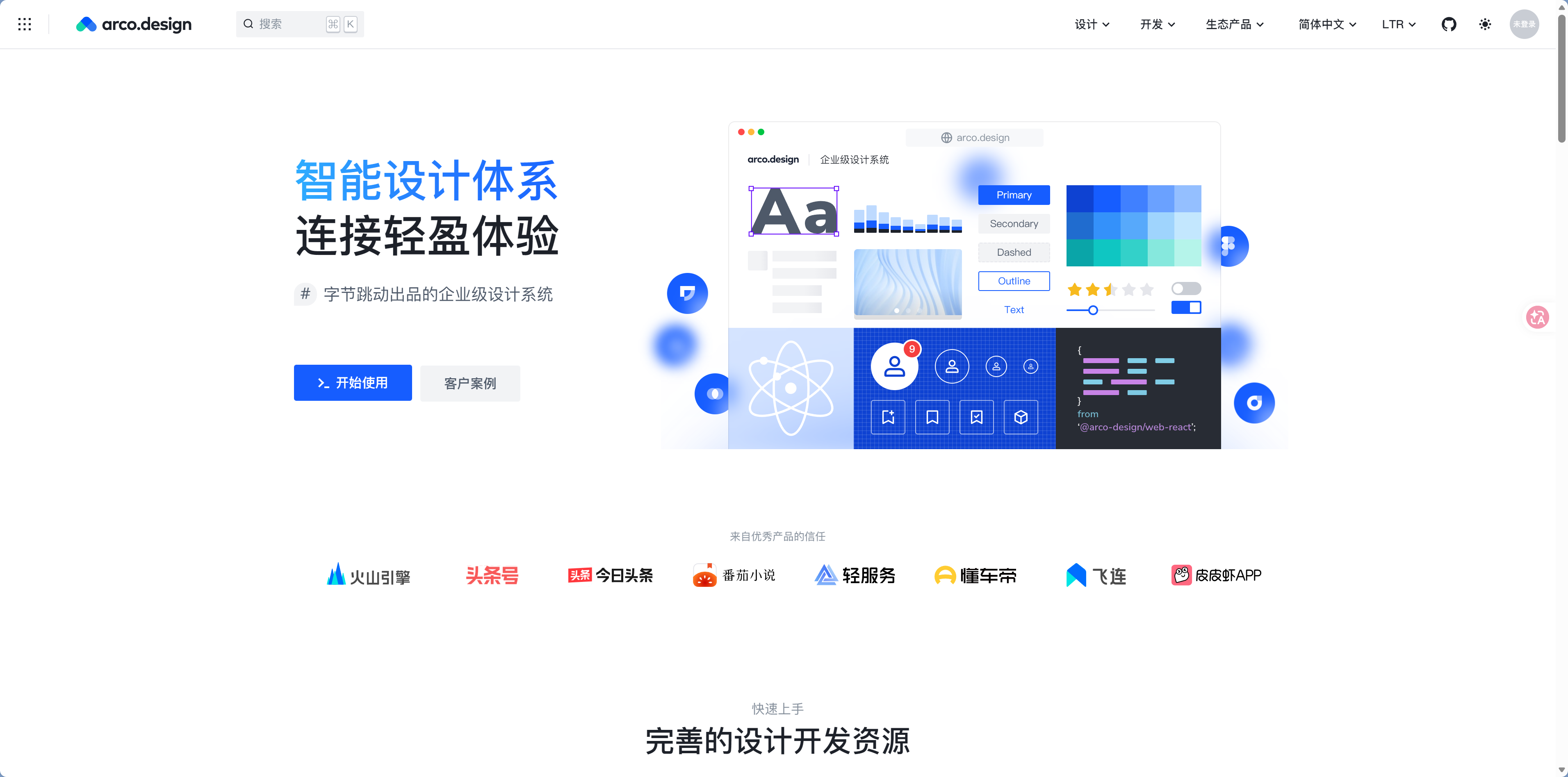 字节跳动出品,60+ 组件经过大规模验证,内置图标库和风格配置平台。