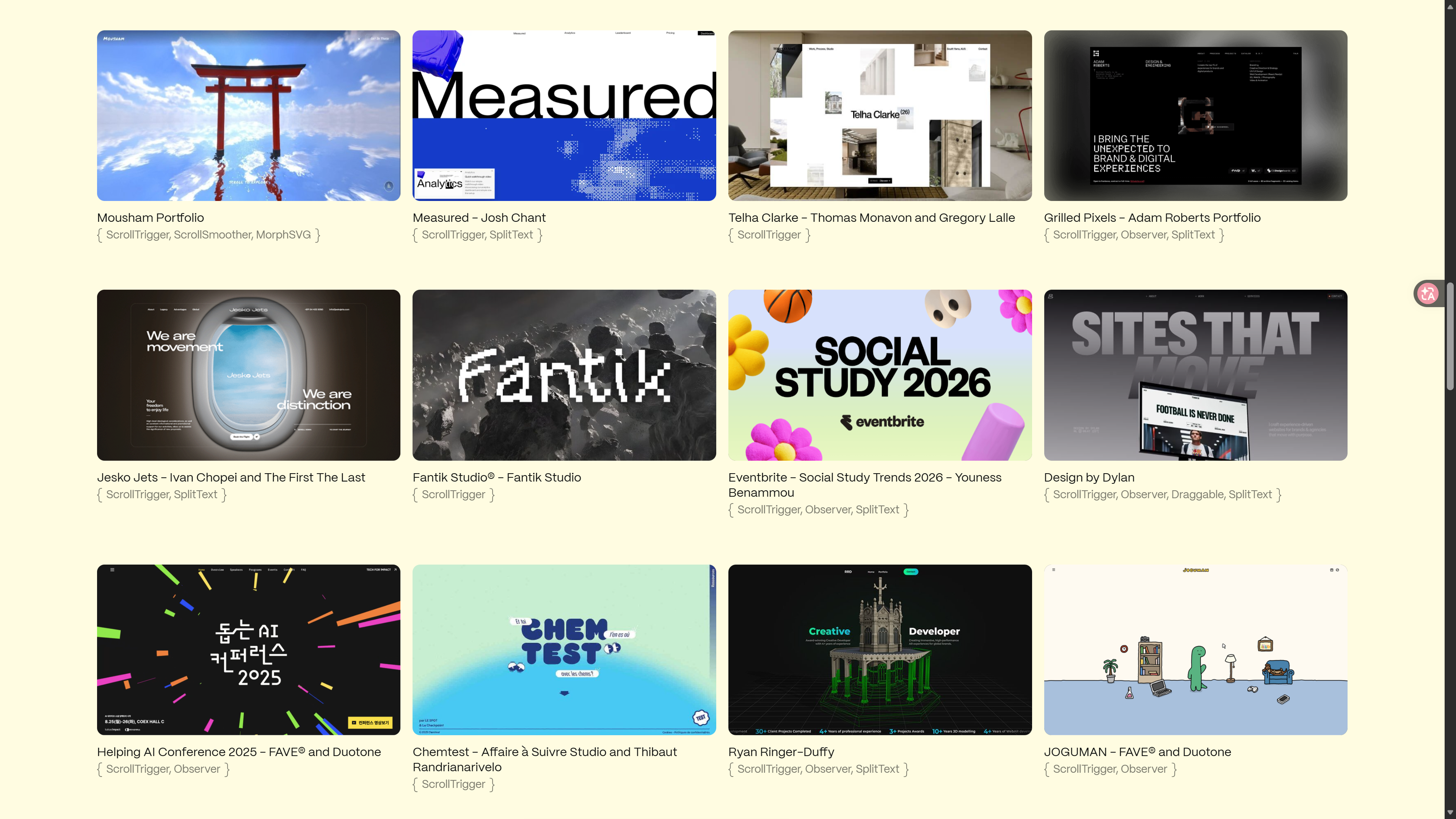 GSAP(GreenSock Animation Platform)是 Web 动画领域的老牌王者,性能极强,能做出最复杂的动画效果。