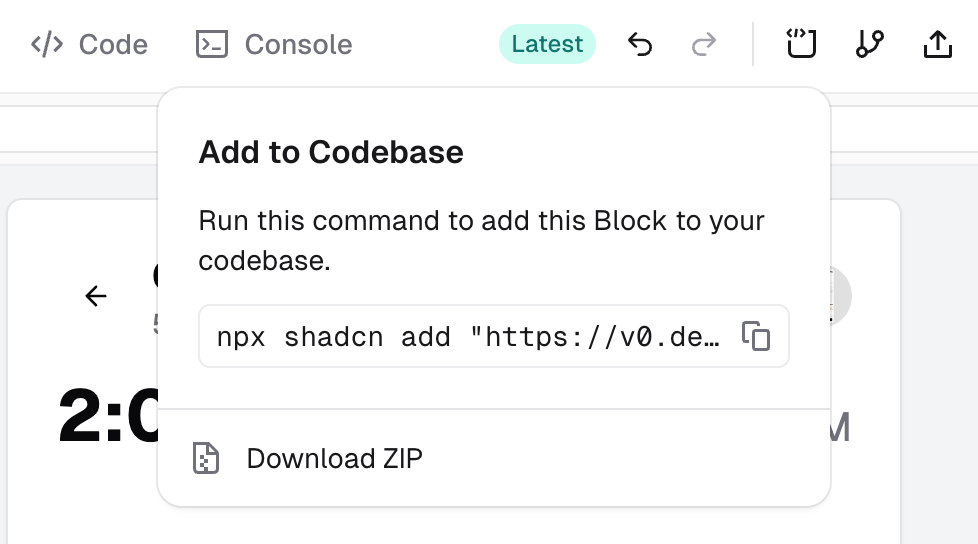 CLI集成:v0允许开发者通过其"Blocks"功能将组件直接安装到项目中。生成组件后,v0提供一个npx命令,你可以在终端中运行以将组件安装到代码库中。这对于使用Next.js的人特别有益,因为安装可以直接添加组件及其所有依赖项。